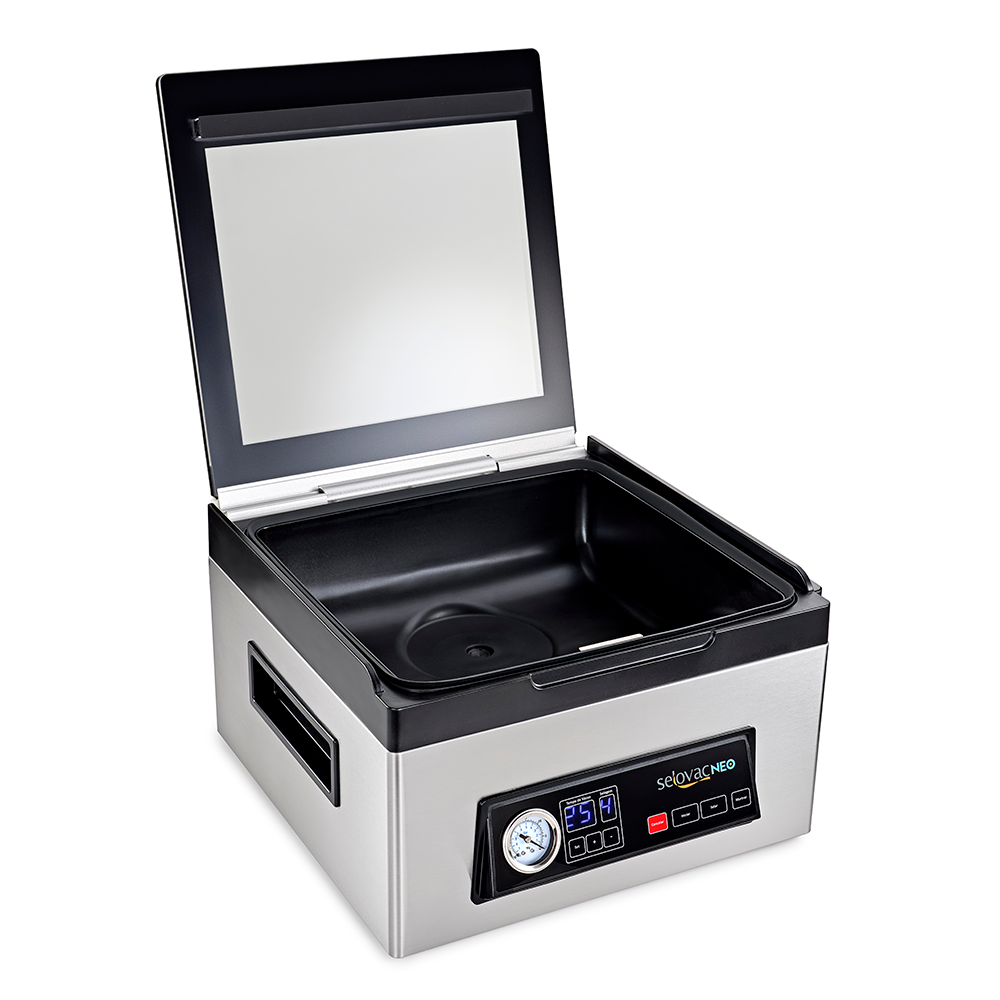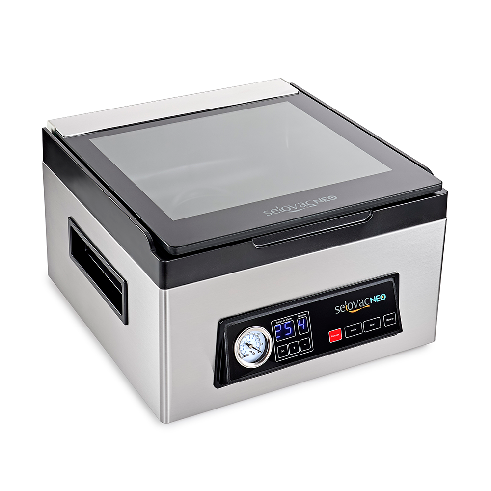 - Display digital com programação de tempo de vácuo e selagem.