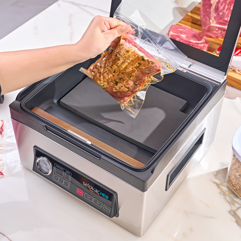 - O nível de vácuo pode ser afetado pela temperatura do alimento; não se recomenda embalar produtos quentes para obter o melhor resultado.